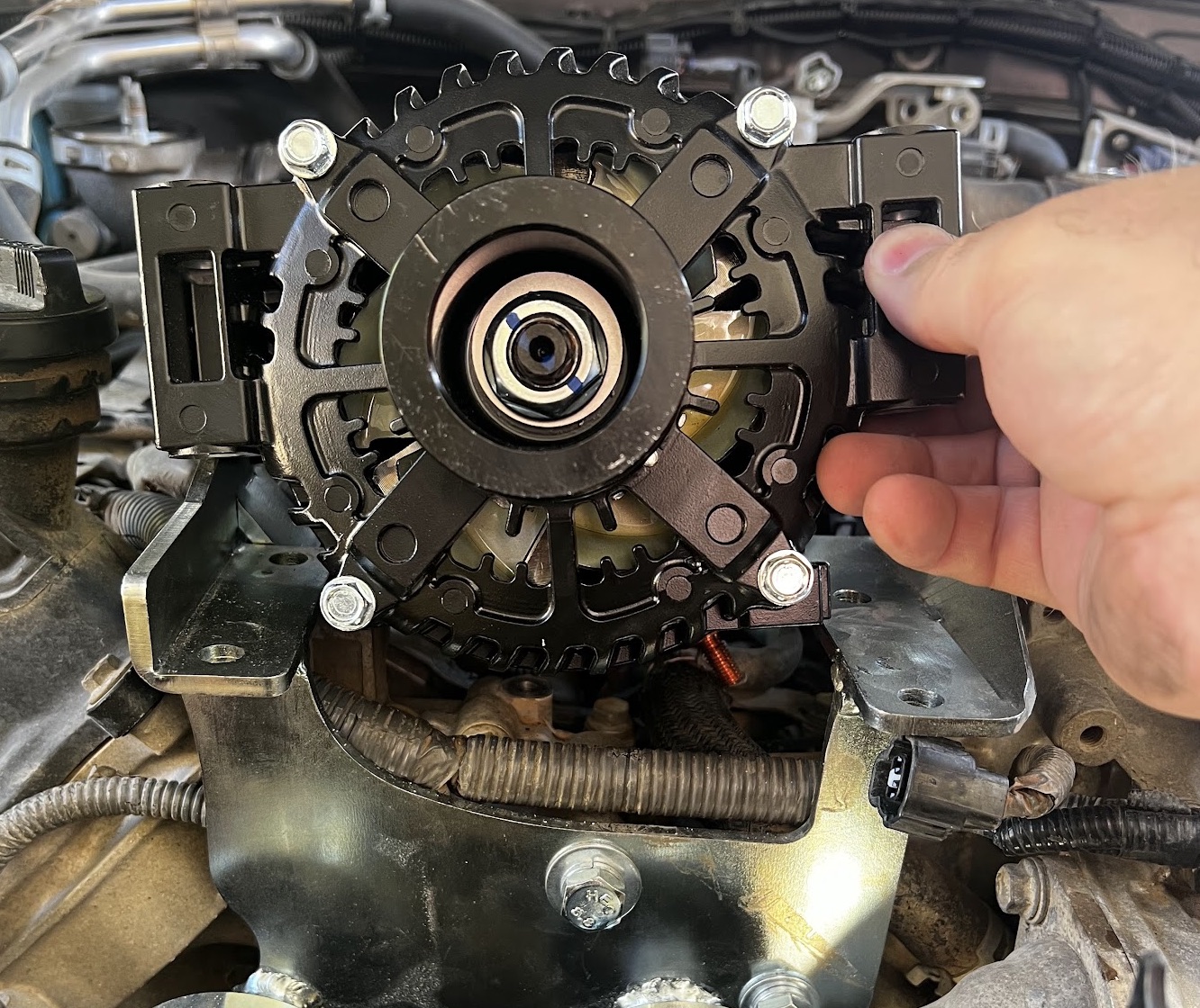 Open Engine Bay Alternator Bracket Installed Alternator Bracket Installed Tight Fit Alternator Modification 1 Alternator Modification 2 Alternator Modification 3 Alternator Fitting Test